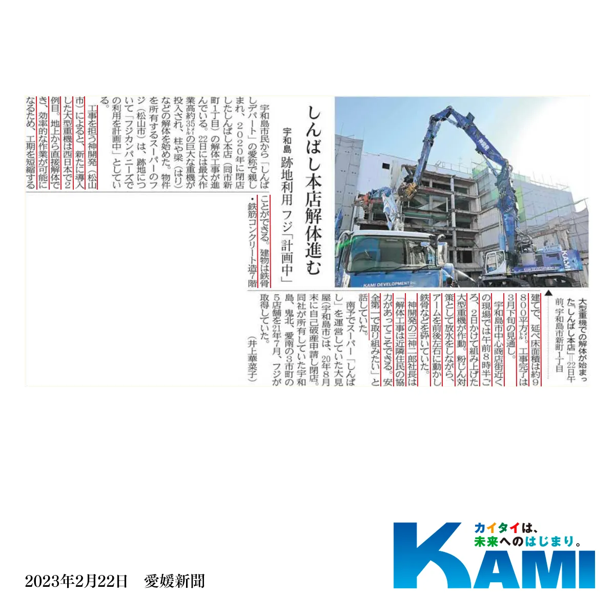 【PDF】 大型重機の導入に伴い、愛媛新聞に弊社記事が掲載されました。