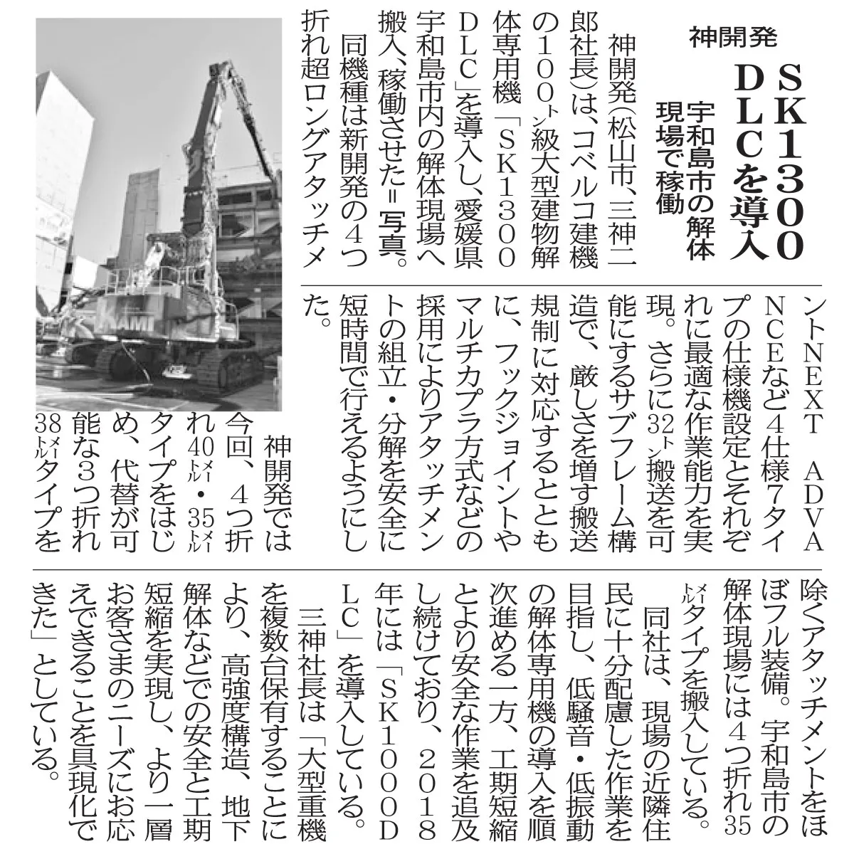 【instagram】 建通新聞に弊社が導入した『KOBELCO SK1300DLC』の記事が掲載されました。
