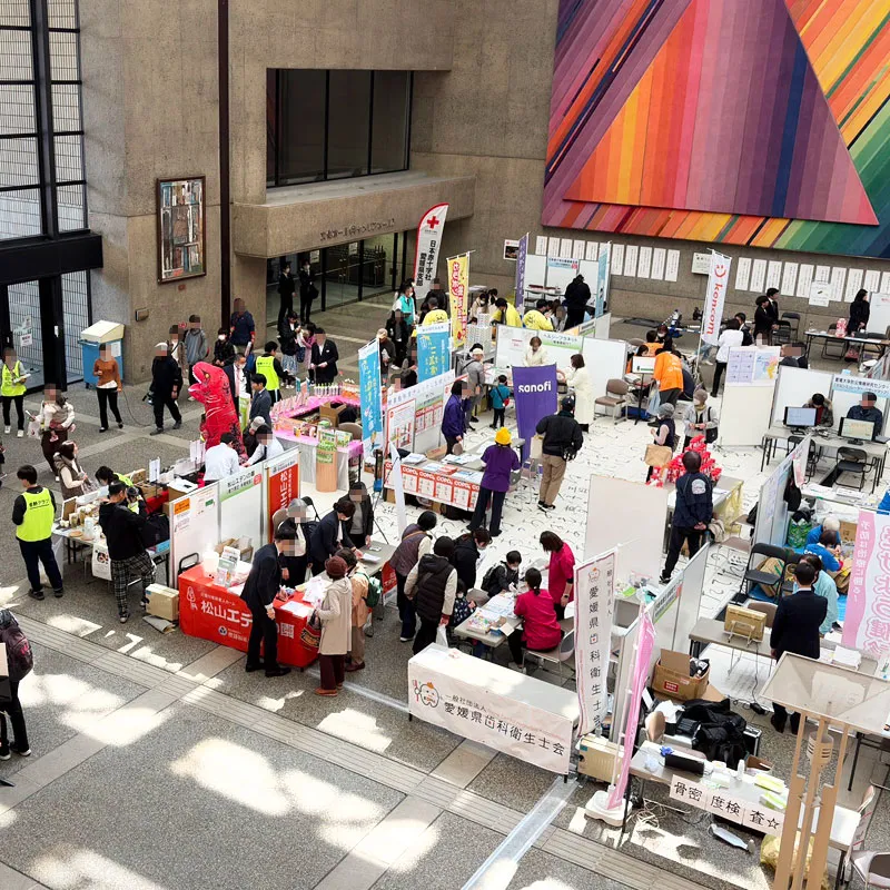防災と健康について楽しみながら学べるイベントが1日(日)、松山市総合コミュニティーセンターで開かれました。このイベントは、あいテレビが展開している「せーのっ!キャンペーン」の一環で、キャンペーンに賛同する企業や愛媛県、それに防災や健康に関わる団体などが参加しました。天候にも恵まれ、会場は多くの来場者でにぎわい、大盛況となりました。