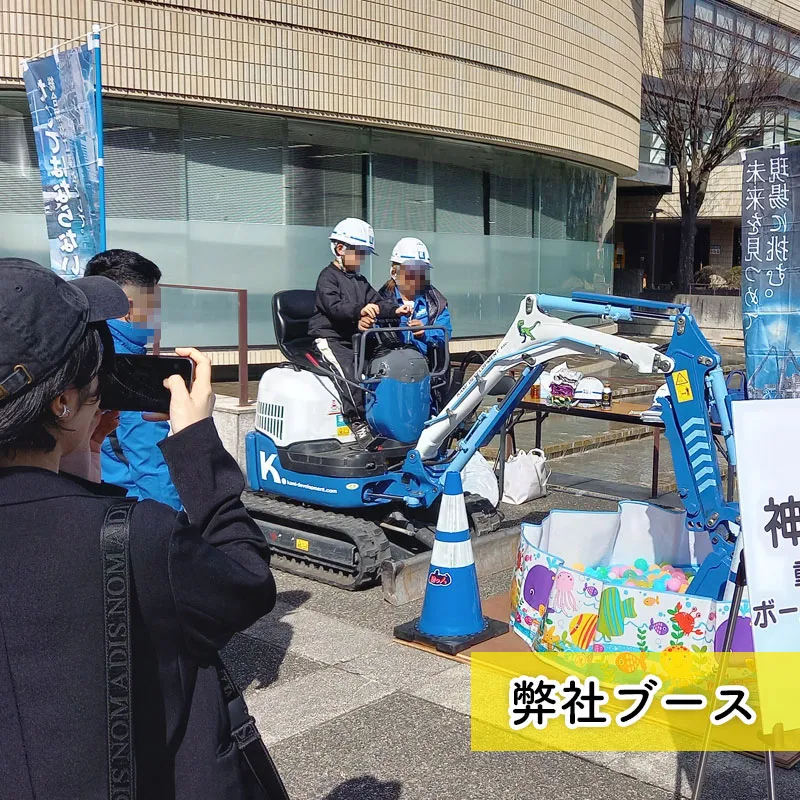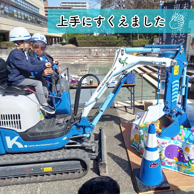 また、体験コーナーでは「ミニ重機によるボールすくい体験」では、小さなお子さまでも操作しやすいミニ重機を使い、カラーボールをすくい上げる体験に挑戦していただきました。参加した子どもたちはみな真剣な表情でレバーを操作し、上手にボールを持ち上げることができると会場から大きな歓声と拍手が上がっていました。